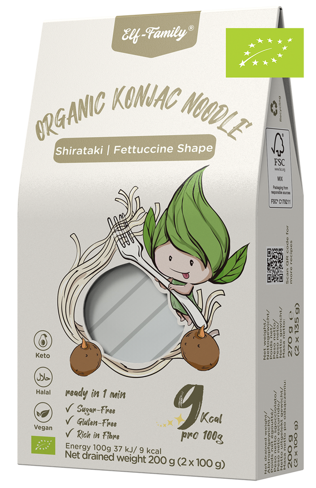 Elf-Family 270g x60er Box(120 Pack) Low Carb Diät Box Bio Pasta Fettucine Konjak Nudeln | nur 9 kcal pro 100g | Vegan, Keto, Halal, Glutenfrei MHD: 12/11/2026 - 270g x60er Box(120 pack) ist auf Lager und wird versandt, sobald es wieder verfügbar ist