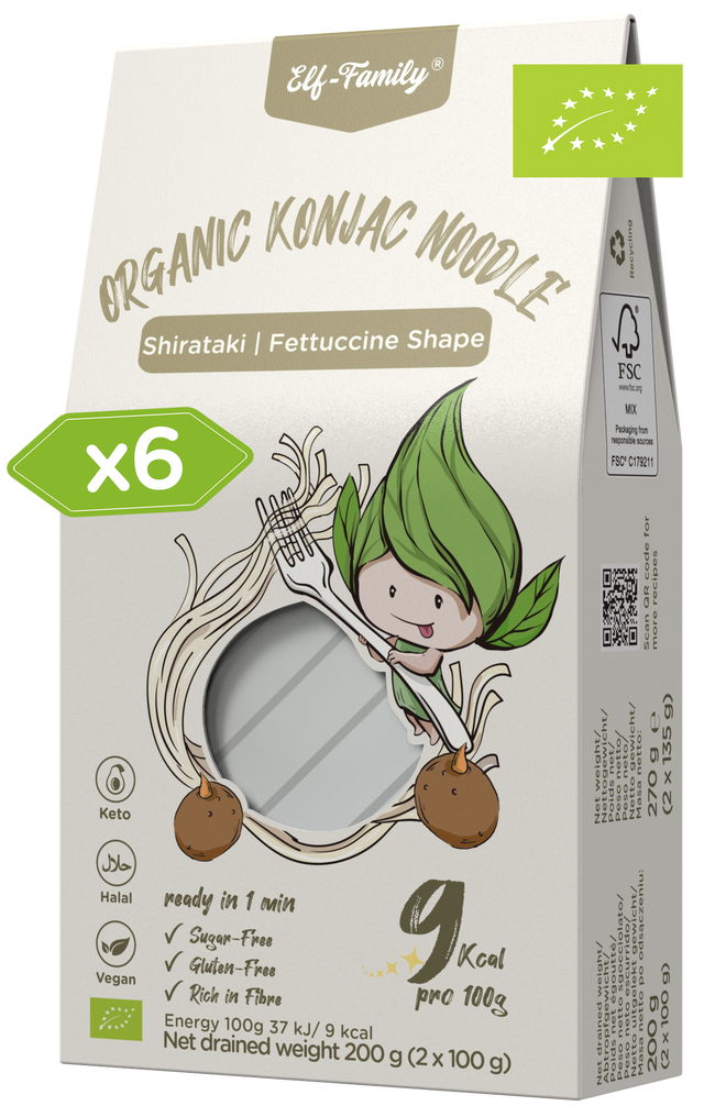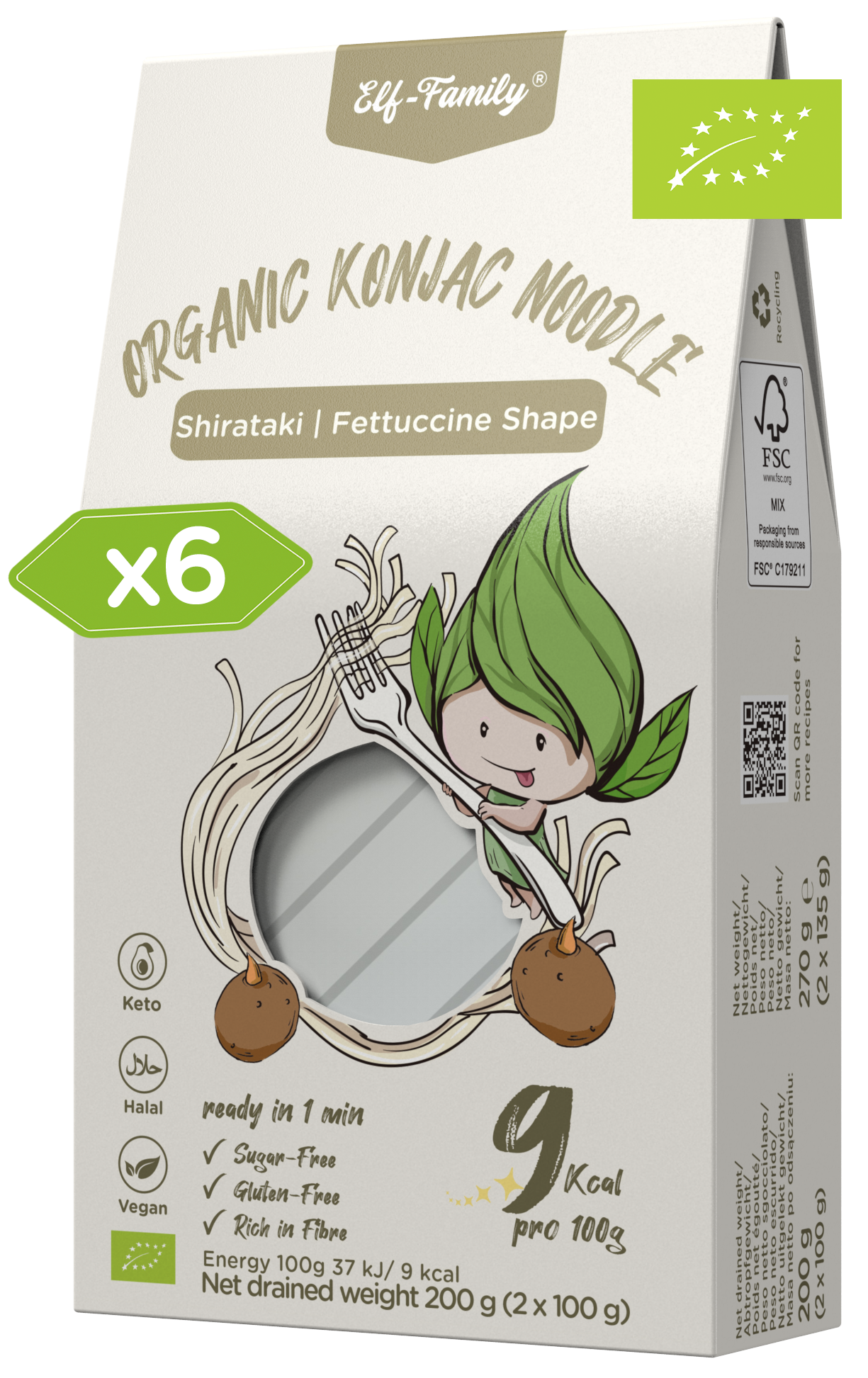 Elf-Family 270g x6er Box(12 Pack) Low Carb Diät Box Bio Pasta Fettucine Konjak Nudeln | nur 9 kcal pro 100g | Vegan, Keto, Halal, Glutenfrei MHD: 12/11/2026 1.62 kg